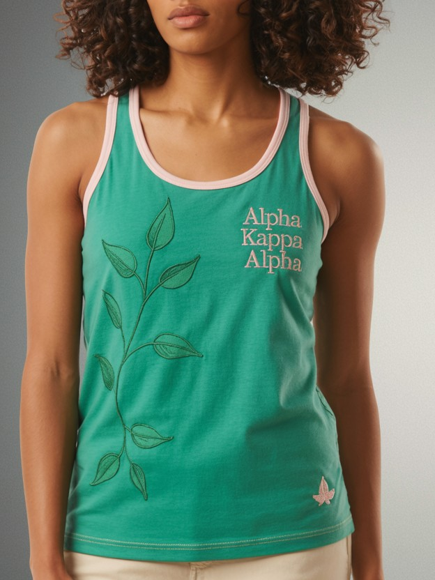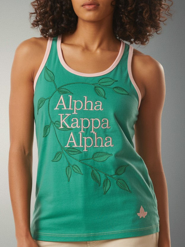 Showcase your sorority pride with this Alpha Kappa Alpha Ivy Elegance Tank Top. Breathable, stylish, and perfect for Greek life events and casual wear.
