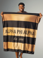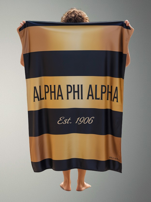Alpha Phi Alpha Heritage Waves Beach Towel – luxurious, soft, absorbent, showcasing fraternal pride with historic Alpha crest and heritage-inspired wave design.