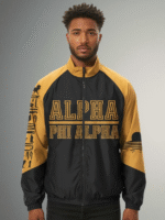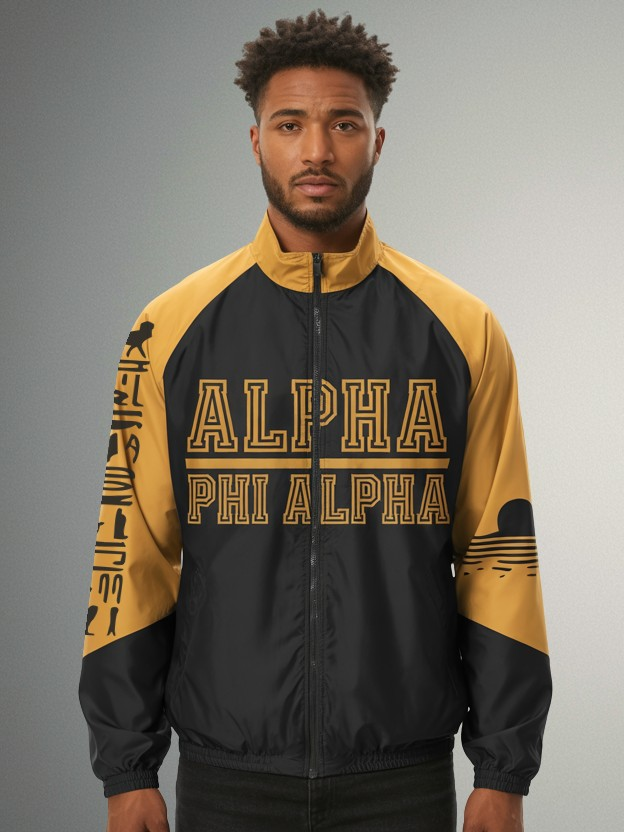 Stay warm and stylish with the Alpha Phi Alpha Sphinx Guardian Raglan Windbreaker, featuring water-resistant material, iconic fraternity logos, and raglan sleeves for movement flexibility.