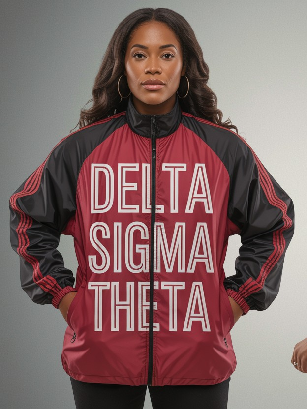 Stylish Delta Sigma Theta Crimson Dynasty Raglan Windbreaker: light, breathable, water-resistant, with signature Greek symbols. Show off your sorority pride in comfort.