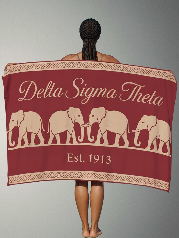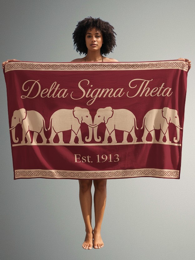 Show your Greek pride with the Delta Sigma Theta Crimson Waves Beach Towel, featuring vibrant colors, soft, absorbent fabric, and distinct sorority insignia.