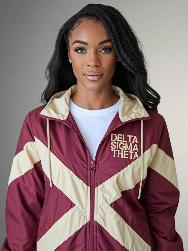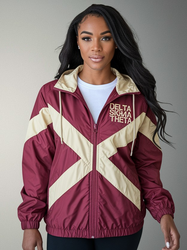 Embrace your Delta Sigma Theta legacy with this stylish windbreaker. Designed with comfort, durability, and iconic sorority insignia to showcase your enduring sisterhood pride.