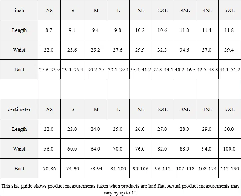This size guide shows product measurements taken when products are laid flat. Actual product measurements may vary by up to 1″.