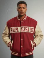 Kappa Alpha Psi Legacy Stride Varsity Jacket: featuring premium quality, fraternity colors, and the Kappa Alpha Psi crest. Perfect for proud, bond-strengthening brotherhood representation.