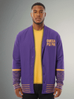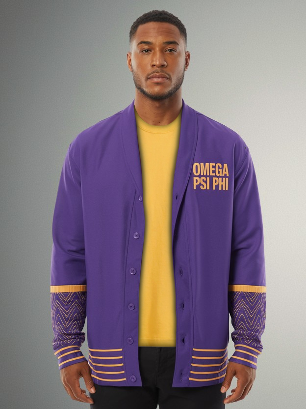 Exude elegance with the Omega Psi Phi tradition cardigan; snug, stylish, featuring fraternity colors, emblem, and perfect for showcasing Greek loyalty and pride.