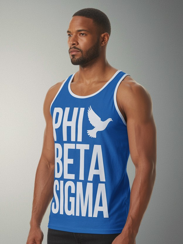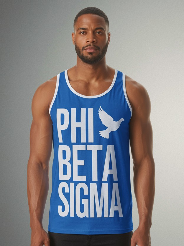 Phi Beta Sigma Legacy Tank Top in royal blue. Comfortable, stylish, with high-quality print fraternity symbols. Perfect for showing Greek life pride.
