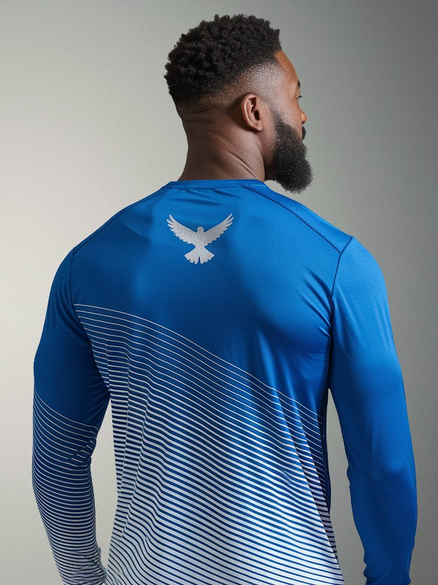 Phi Beta Sigma Heritage Waves Performance Long Sleeve, designed with moisture-wicking fabric, perfect for fraternity events. Show your pride with our signature Greek letter design.