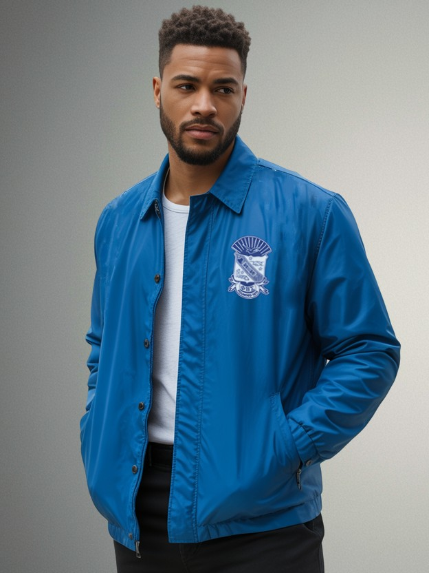 Phi Beta Sigma Mr. GOMAB Jacket offers style and pride with embroidered fraternity symbols, classic royal blue color, and superior warmth for colder months.