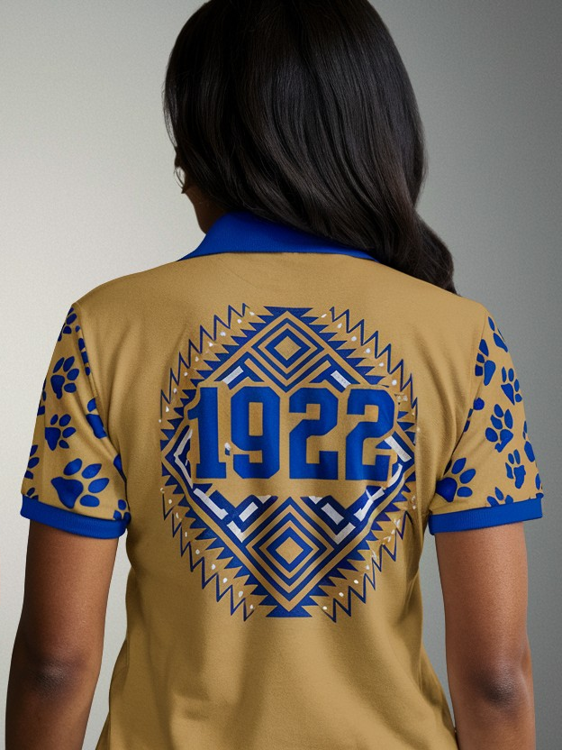 Sigma Gamma Rho Gold Legacy Polo: an elegant, golden polo featuring embroidered sorority crest, ideal for displaying Sigma Gamma Rho pride with style and sophistication.
