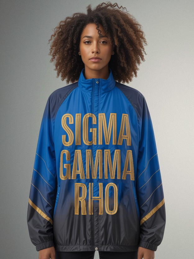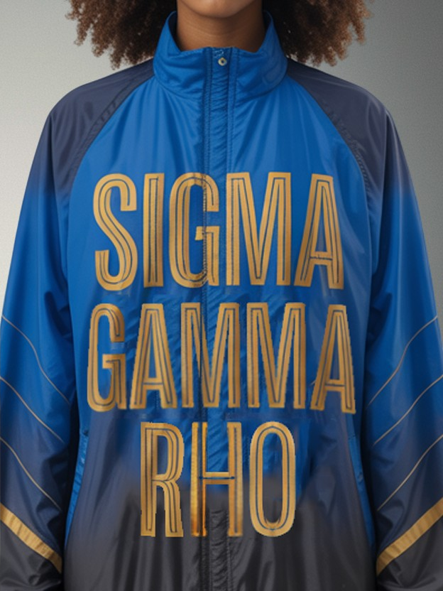Stylish Sigma Gamma Rho Golden Storm Raglan Jacket. Features sorority colors, comfortable fit, waterproof material – perfect for showing your Greek pride in any weather.