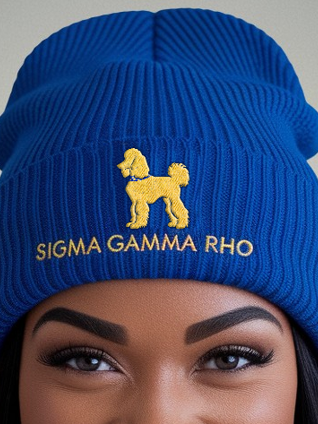 Show off your Sigma Gamma Rho pride with this knit beanie, featuring the iconic poodle logo. Perfect for chilly weather and sorority events alike!